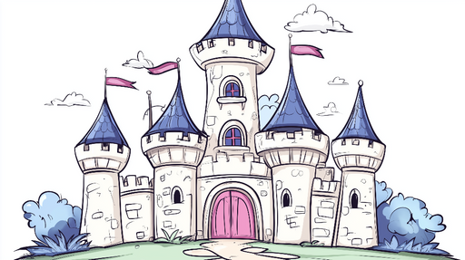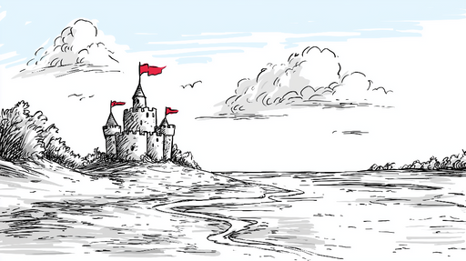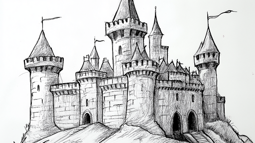 WonderMuralDenna tapet har en magnifik teckning av ett medeltida slott, rikt på detaljer med sina majestätiska torn och fladdrande flaggor. Den skissade stile...
