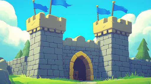 WonderMuralDenna levande tapet fångar essensen av ett medeltida slott, med sina majestätiska torn och flaggor som fladdrar under en ljusblå himmel. De grå ste...