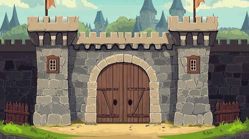 WonderMuralDenna fängslande tapet visar en illustration av ett medeltida slott med en majestätisk träport, inramad av stenväggar. De noggranna detaljerna i me...