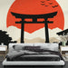 Denna tapetmålning för tankarna till en traditionell japansk scen och fångar elegansen hos en torii framför en ljusröd sol som stiger upp över horisonten. De svarta siluetterna kontrasterar vackert mot den krämiga bakgrunden och ger en touch av mystik och frid.