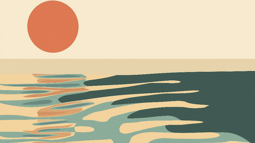Visa fullständiga detaljerTapet solnedgång | Minimal illustration med vågor och en orange sol