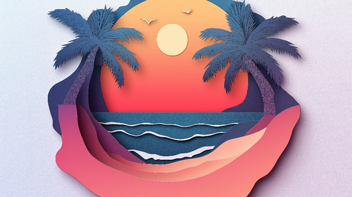 WonderMuralVår tapet sunset väcker en sublim tropisk scen, med majestätiska palmträd som omger en lugn strand. Färggradienten som sträcker sig från mjukt rosa...
