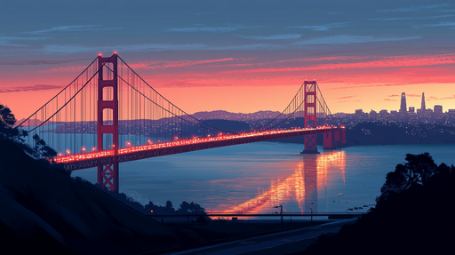 Visa fullständiga detaljerTapet ikoniska bro | Solnedgång över bukten