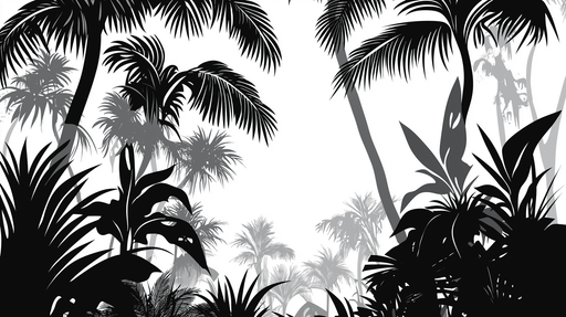 WonderMuralDenna fängslande fototapet avbildar ett djungellandskap genom eleganta silhuetter av palmer och lövverk. Nyansarna av svart och grått skapar en mod...