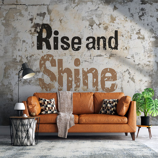WonderMuralDenna fototapet visar ett inspirerande citat 'Rise and Shine', vilket gör den perfekt för energisk väggdekoration. Designen har en åldrad textur, s...