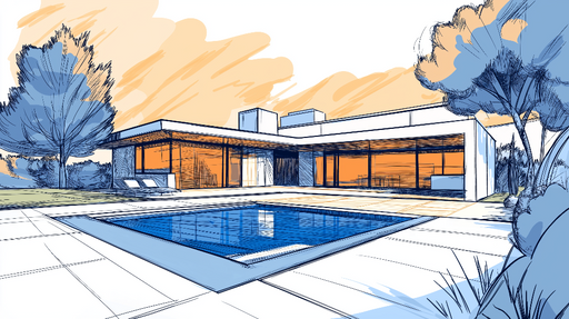 Visa fullständiga detaljerFototapet modern arkitektur | Stilfull illustration av ett hus med en pool