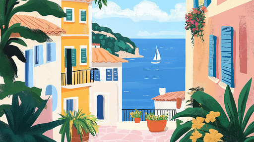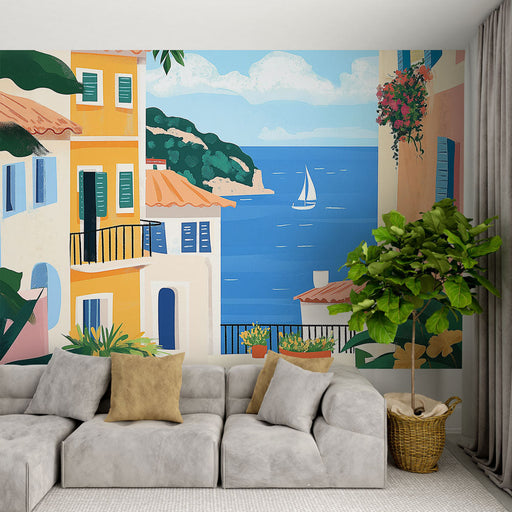 WonderMuralDenna tapetmålning erbjuder en magnifik medelhavsillustration som fångar essensen av kustbyar med sina färgglada fasader och blommande balkonger. D...