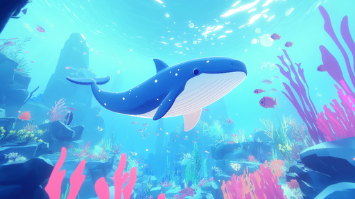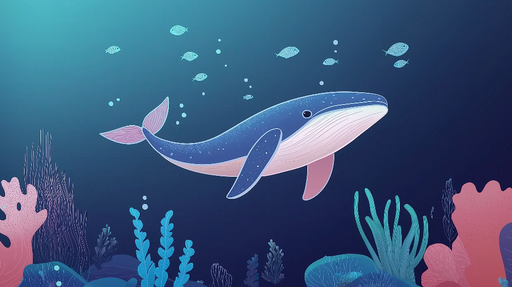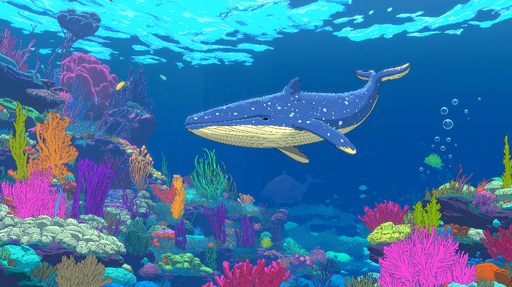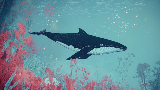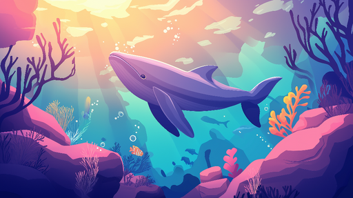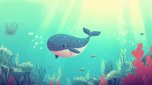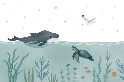 ArtiPixelMjuk och lugnande, denna tapetillustration fördjupar ditt utrymme i en fridfull undervattensvärld, bebodd av en majestätisk val och olika fiskar so...