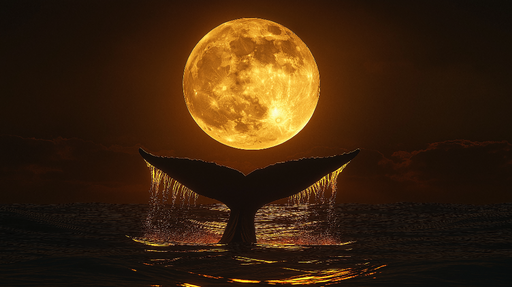 WonderMuralDenna magnifika marin dekoration fångar den majestätiska skönheten hos en valstjärt som dyker upp ur vågorna, upplyst av det gyllene skenet från en...