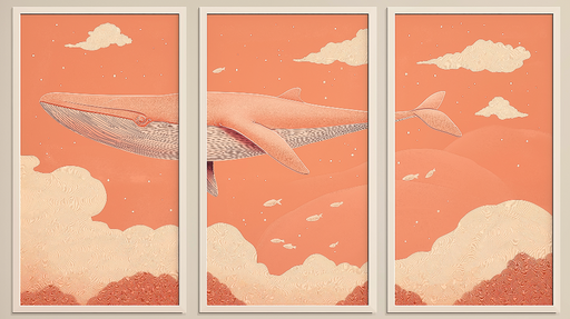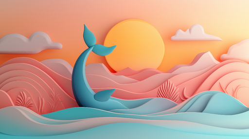 WonderMuralDenna fängslande fototapet har en stiliserad oceanisk scen, med en val som graciöst simmar genom mjuka vågor och präglade kullar. De pastellfärgern...