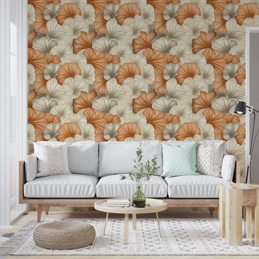 Visa fullständiga detaljerFototapet delikata blommor | Elegant blommönster med nyanser av orange och beige