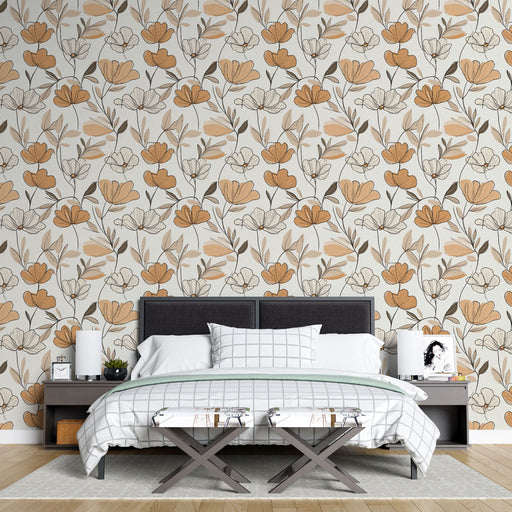 WonderMuralDenna tapet har ett charmigt mönster av illustrerade blommor i varma orange och beige toner, förstärkt med fina detaljer för en handgjord effekt. D...