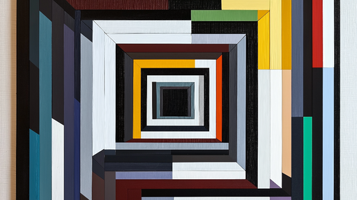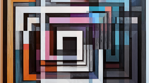 WonderMuralDenna fängslande tapetmålning har en komplex geometrisk design, bestående av flera överlappande lager av färger. Fyrkantiga och rektangulära former...