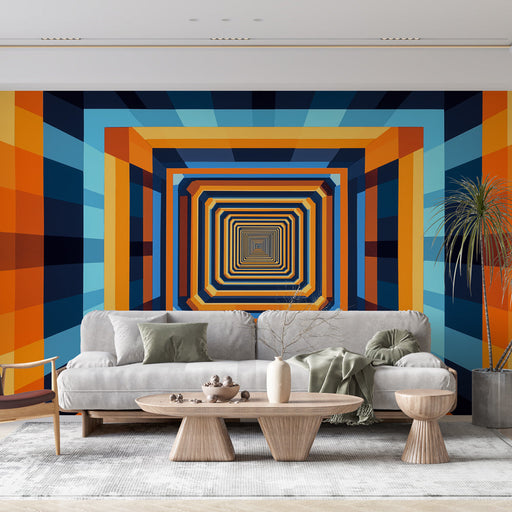 WonderMuralDenna fängslande tapetmålning har ett fascinerande geometriskt mönster som verkar skapa oändlig djup med sina lager av färgglada block. De livliga ...