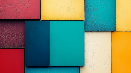 WonderMuralDenna dynamiska tapet för murar framhäver ett geometriskt mönster bestående av paneler med rika och varierande färger, som sträcker sig från ljusrö...