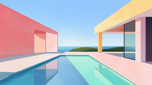 WonderMuralUpptäck vår fototapet som fångar en andlös utsikt över havet genom en modern och minimalistisk design. De ljusa nyanserna av rosa, gul och turkosbl...