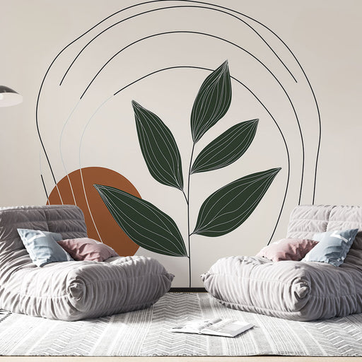 WonderMuralUpptäck vår naturinspirerade tapet, med en stiliserad blad med delikata linjer, omgiven av geometriska mönster. Denna design kombinerar modernitet ...