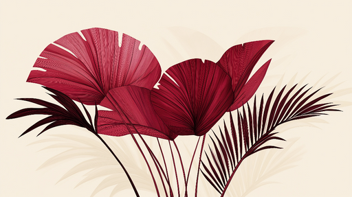 WonderMuralFördjupa dig i en tropisk atmosfär med vår Fototapet med ett rött palmbladsmönster. Denna unika design kombinerar en rik burgundy-palett med en lju...