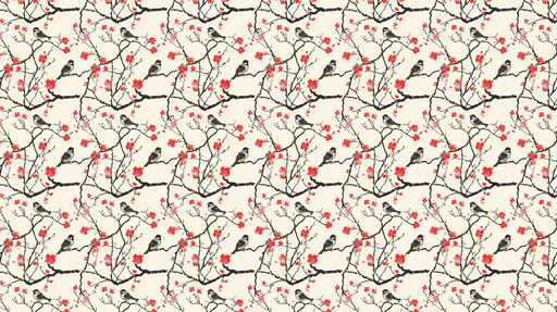 WonderMuralDenna tapet har ett förtrollande mönster av charmiga fåglar som sitter på eleganta grenar, smyckade med ljusa röda blommor. Den mjuka beige bakgrun...