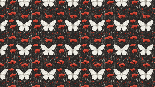 WonderMuralVår exklusiva Fototapet har ett rikt och levande mönster av vita fjärilar som flyter bland röda vallmor, allt på en mörk bakgrund som kontrasterar ...