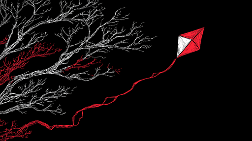 WonderMuralVår fantastiska fototapet har en röd drake som elegant svävar, dragen av en röd snodd, ovanför ett stiliserat träd med vita och röda grenar mot en ...