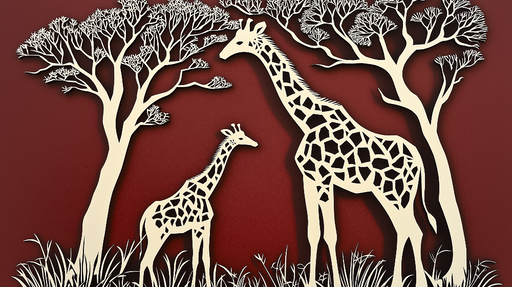 WonderMuralDetta fängslande tapetmönster visar två giraffer, en vuxen och en ung, vars silhuetter är delikat skurna i en konstnärlig design. De vita silhuette...