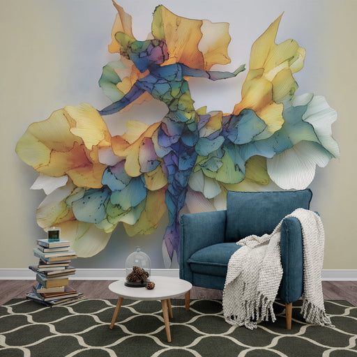 Art'loloOmvandla ditt utrymme med denna Fototapet konstnärliga dans, med en fängslande silhuett i levande och flytande nyanser. Nyanserna av blått, gult oc...