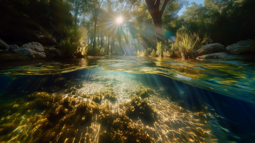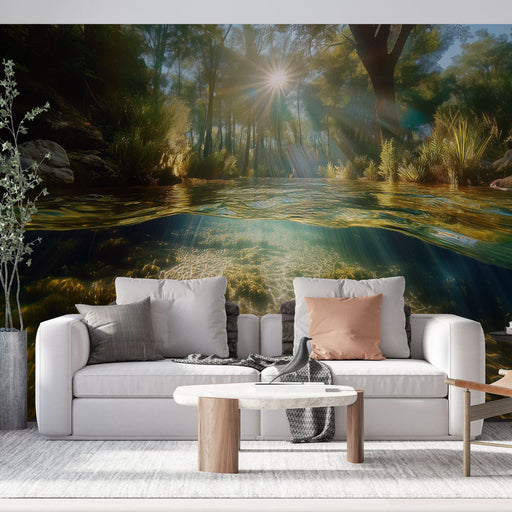 Art'loloUpptäck vår Fototapet akvatiska natur som fångar lugnet i en undervattensscen med solstrålar som tränger igenom vattenytan. Denna fördjupande desig...