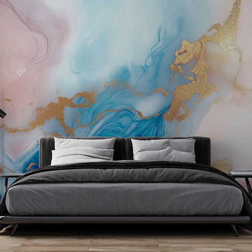 Art'loloFör en touch av modern elegans till ditt hem med vår abstrakta fototapet, som kombinerar mjuka nyanser av rosa och blått med gyllene accenter. Denn...