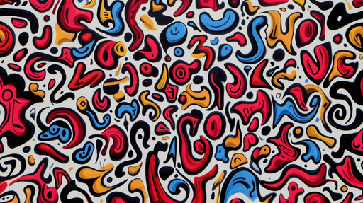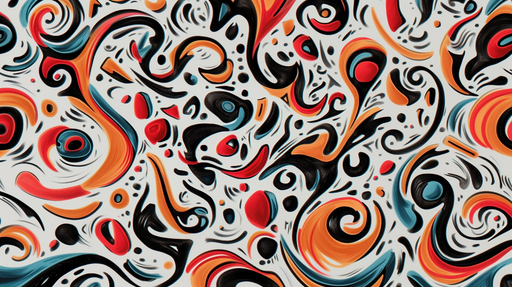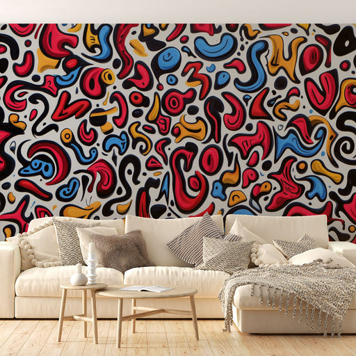 Art'loloUpptäck vår Fototapet med sina virvlande och dynamiska mönster. De ljusa och djärva färgerna, inklusive röd, blå, orange och svart, blandas harmoni...
