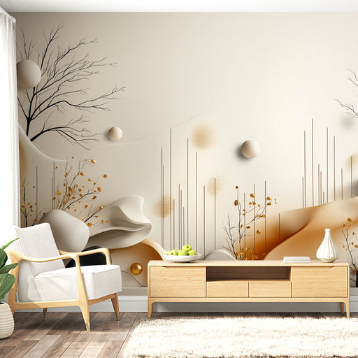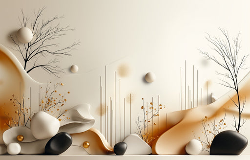 Art'loloFör en konstnärlig touch till ditt utrymme med vår abstrakta fototapet, som visar en elegant komposition av naturliga element i oker och beige tone...
