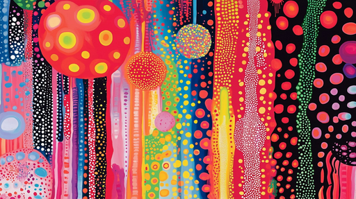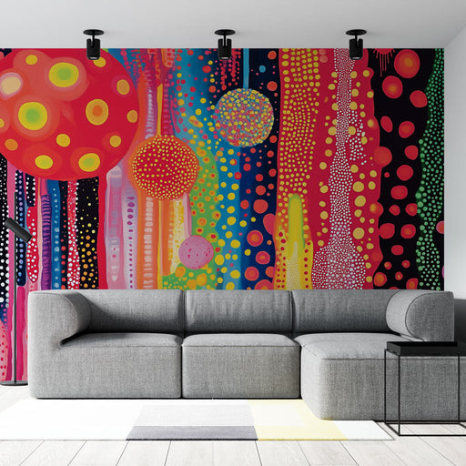 Art'loloOmvandla ditt utrymme med denna livliga fototapet, som har en explosion av färger och dynamiska prickiga mönster. Perfekt för dem som vill skapa en...