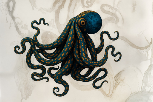 Art'loloUpptäck vår Fototapet konstnärliga bläckfisk, perfekt för att lägga till en maritim och elegant touch till ditt interiörutrymme. Med sin gyllene de...
