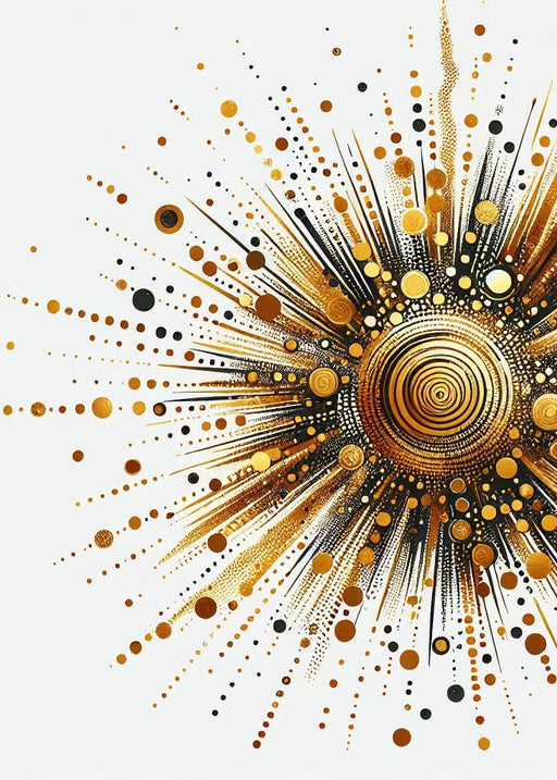 Gold ArtDenna konstnärliga Vit och Guld Tapet fångar essensen av en stjärnexplosion, där gyllene och ebenholtstoner brister från mitten och skapar en enast...
