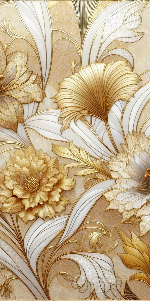 MistyUpptäck den subtila elegansen hos denna tapet med gyllene blommönster. De fint ritade bladen och blommorna ger en känsla av lätthet och förfining t...