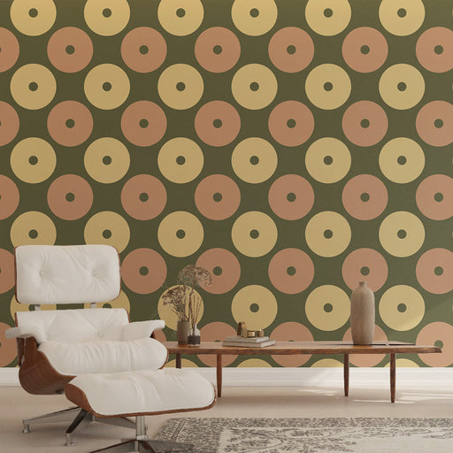 Studio SamaDekorera din plats med vår retro polka dot tapetmålning, med gröna och bruna prickmönster på en beige bakgrund. Denna klassiska design ger en vinta...