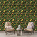 Vår fototapet har ett livligt mönster av röda, gula och rosa blommor omgivna av frodiga blad. Den djupt gröna bakgrunden låter blommorna lysa, vilket ger en touch av natur och friskhet till ditt utrymme. Varje detalj är noggrant illustrerad, vilket gör denna design både rik och välkomnande.