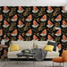 Fototapet fåglar | Grafiskt mönster av färgglada fåglar på svart bakgrund