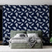 Fototapet fjädrar | Vit fjädermönster på midnattsblå bakgrund