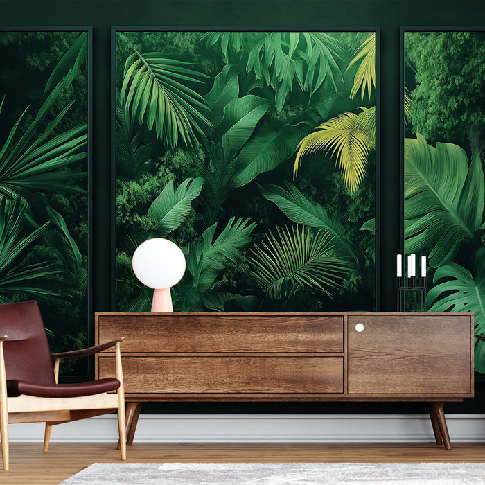 För att komplettera denna fototapet, välj neutrala färger eller jordnära toner som kommer att framhäva den livfulla grönskan utan att överväldiga utrymmet. Tillbehör i trä eller naturmaterial kommer ytterligare att accentuera denna zen-ambians.
