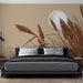 Denna tapet framhäver ett stiliserat mönster av vass och gräs, framhävt av en gyllene solljus. De varma nyanserna av brunt och beige skapar en varm och välkomnande atmosfär, perfekt för att värma upp alla interiörutrymmen.