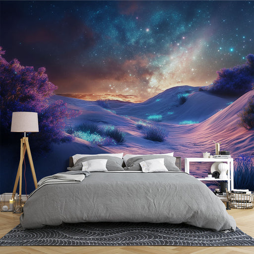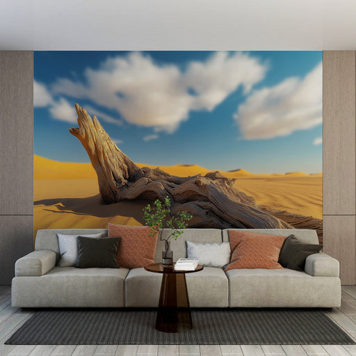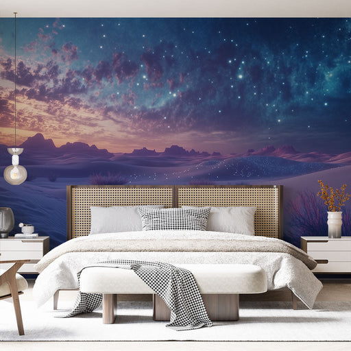 För en lyckad dekoration, para denna tapetmålning med naturliga nyanser som vitt, beige och träelement för att framhäva den varma atmosfären.