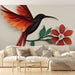Denna fängslande tapetmålning har en vackert detaljerad kolibri, tillverkad av färgglada papper med livliga nyanser av rött och orange, som harmoniskt blandar sig in i en blommig design. Ackompanjerad av en elegant röd blomma väcker detta mönster naturens skönhet till liv och ger en konstnärlig touch till ditt inre.