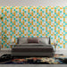 Denna färgglada mönster är idealisk för ett barnrum, ett lekfullt vardagsrum eller till och med ett kontor. Dess retrostil ger en unik charm samtidigt som den lyser upp utrymmet med sina glada färger.