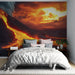 Denna fängslande tapetmålning skildrar en spektakulär vulkanisk scen, som framhäver en utbrottande vulkan med strömmar av brinnande lava och en virvlande himmel av orange och rött. Bilden skapar en dynamisk och energisk atmosfär, perfekt för en djärv dekoration.