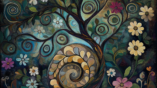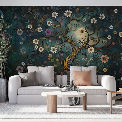 Fototapet hayat ağacı | Spiraller ve çiçeklerle sanatsal tasarım