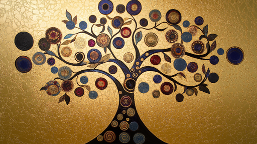 WonderMuralParlak altın bir arka plan üzerinde renkli dairelerle süslenmiş sanatsal bir ağaç içeren muhteşem duvar resmi duvar kağıtlarımızı keşfedin. Bu çağd...