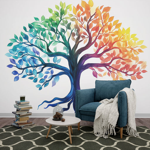 WonderMuralBu duvar resmi kağıdı, zengin ve dokulu bir zeminden çıkan çok renkli yapraklı muhteşem bir ağacı tasvir ediyor. Kırmızıdan mora, yeşile ve turuncu...
