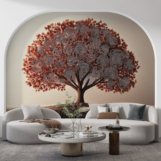 Tüm ayrıntıları görüntüleFototapet hayat ağacı | Spiral desenler ve kırmızı yapraklar