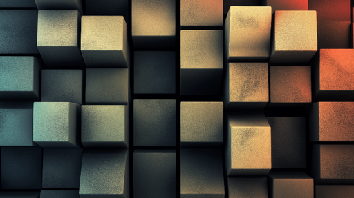WonderMuralBu Duvar Resmi, dokunma hissi katan hafif dokulu bitişi olan, derin mavi ve altın tonları arasında oynayan yığılmış küplerin çağdaş bir desenini iç...